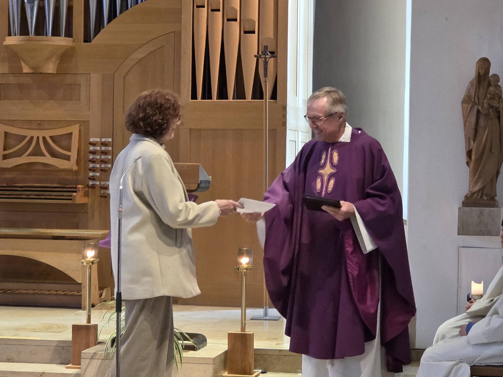 Bei der Eucharistiefeier am 2. Fastensonntag übergab Beate Hochhold im Namen des Konviktkaffee Teams (Familien Hochhold und Renner) die im letzten Jahr eingegangenen freiwilligen Spenden an Pater Josef "Pepi" Költringer OSFS in der Höhe von Euro 700,00.